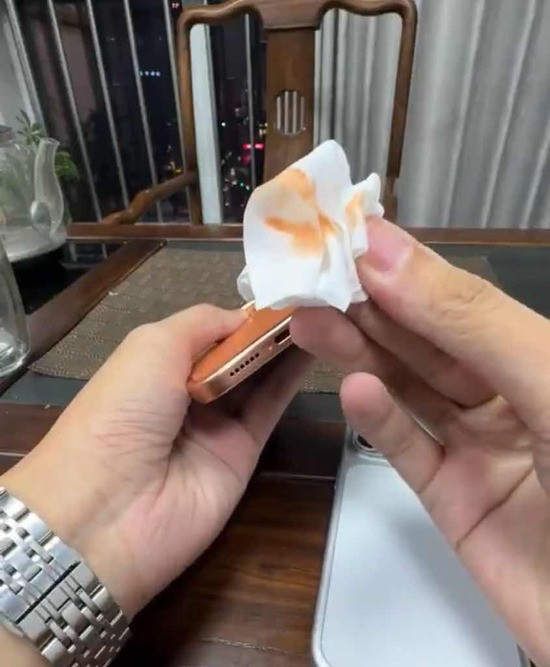 オレンジの絵の具をつけたティッシュを用意して、拭く前に裏側を見せずに撮ればいい