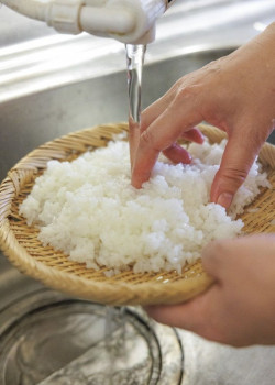 お冷の水ぶっかけて流し込むように食う