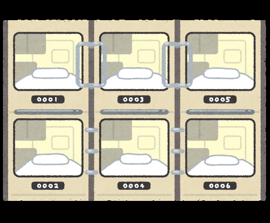 前に京都で泊まったカプセルホテルは部屋にカプセル置いてあるのだった