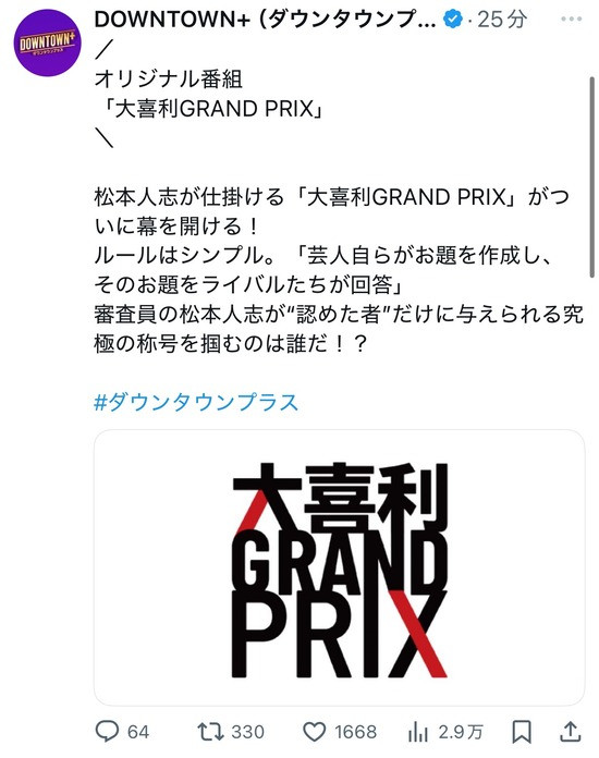 Xのダウンタウンプラスのフォロワー16万人しかいないから課金登録者数これの半分もいかんやろ