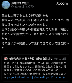 これの怖いのは一度妊婦がダイエットすると孫の孫まで低身長になることよな