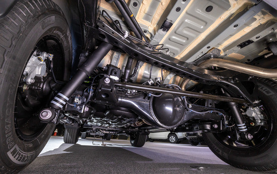 シャシー: 新興国での実績が豊富な頑丈なIMV(Innovative International Multi-purpose Vehicle)ラダーフレームを採用。FJ専用に新開発された2580mmのショートホイールベースを持ちます。