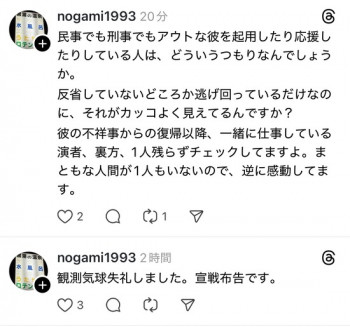 この野上って人はニュースのインタビューに答えたら映さないって約束してた子供の顔まで出されてテレ朝とブチギレトラブルあったからテレ朝×令和くるまとか最悪の組み合わせやろなw
