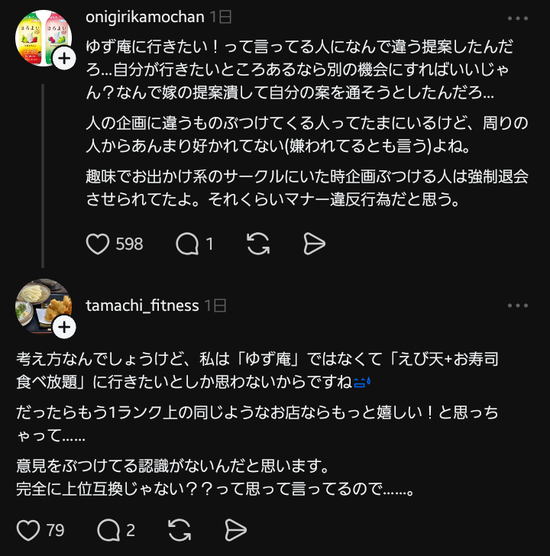 こういう女との付き合い方はいったんゆず庵いいよね!って言って受け止めてから追加の提案って形をとることやんな