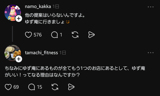 ゆず庵に行きたいって具体的に店名指定してる相手に対して「同じもの食べれるしこっち行こう」はおかしいやろ