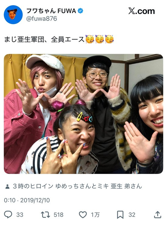 ちな、フワちゃんは亜生軍団であり一緒に番組してた仲