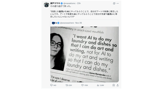 あとアートやエンタメをAIがやるのがガチで機械の人間支配みたいで気持ち悪い