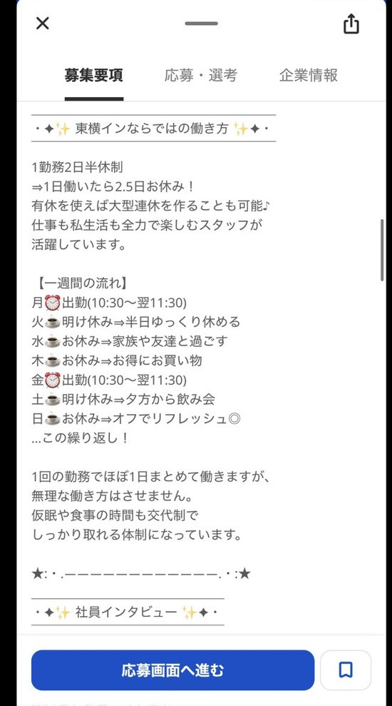 仕事内容については職種違うから知らんけど