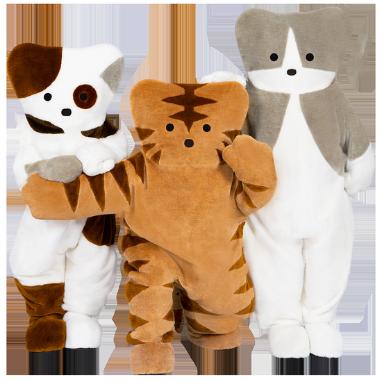 着ぐるみはぴっちりした服で草