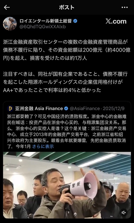 何人かの資産家が破綻するだけでしょ、中国は共産主義だから別にそれは何の問題でもないのよ