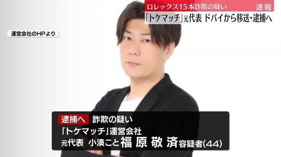 高級腕時計を詐取疑い、「トケマッチ」元代表を逮捕 UAEから帰国