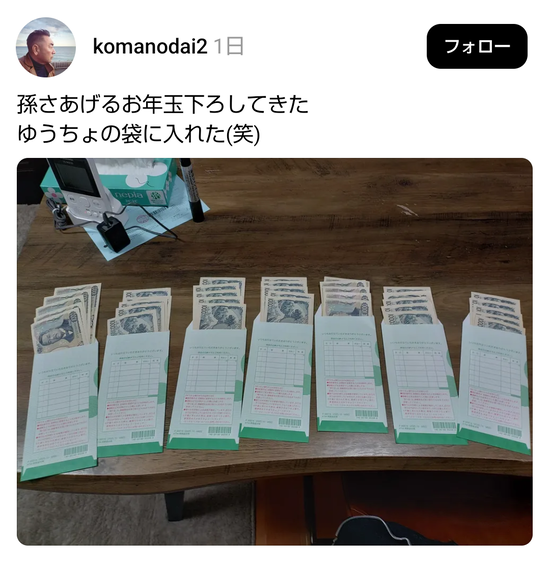 子供世帯が同時に帰ってきたらお年玉だけで済まんしな
