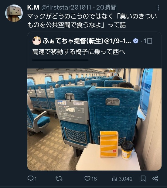 新幹線でマクド食うだけでバズるとかチャンスじゃんね逆に