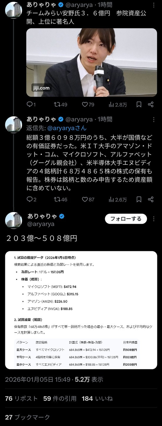 159:つらたんニュースさん 2026/01/05(月) 20:48 ID:ajAk2zMia