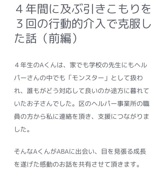 ABAと書いてあるからおまえらの予想通り障害者の子の話やな