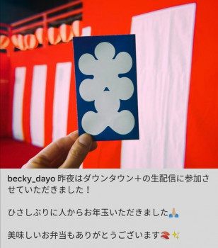 また、配信翌日の1月11日には、ベッキーが公式インスタグラムを更新。《ひさしぶりに人からお年玉いただきました》《美味しいお弁当もありがとうございます》と報告し、松本からの弁当の中身を公開した。