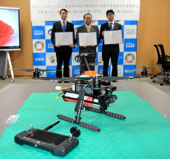 ドローンを操作するのは、測量事業でドローンを使っている地元の佐藤土木測量設計事務所。市とは災害時に協力する協定を結んでおり、3者は同日、新たに「熊出没時の無人航空機の使用に関する協定」を結んだ。