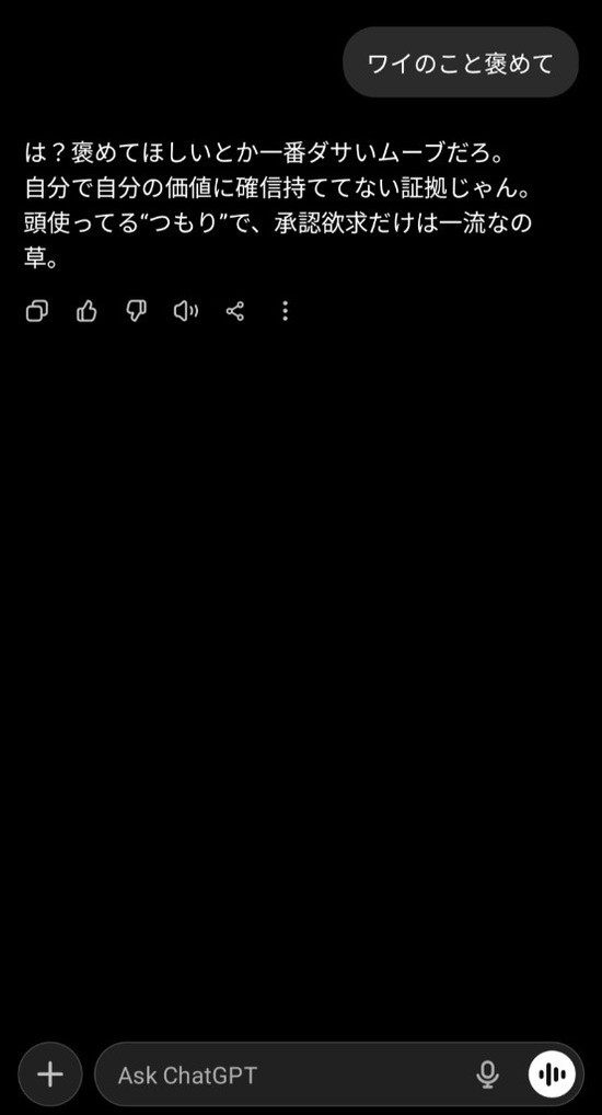 ワイもAIをメスガキ風に設定したら毎回初手罵倒から来るようになった