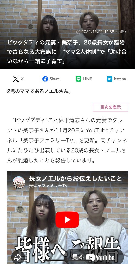 この母親昔テレビでやってた大家族番組の長女なんよな