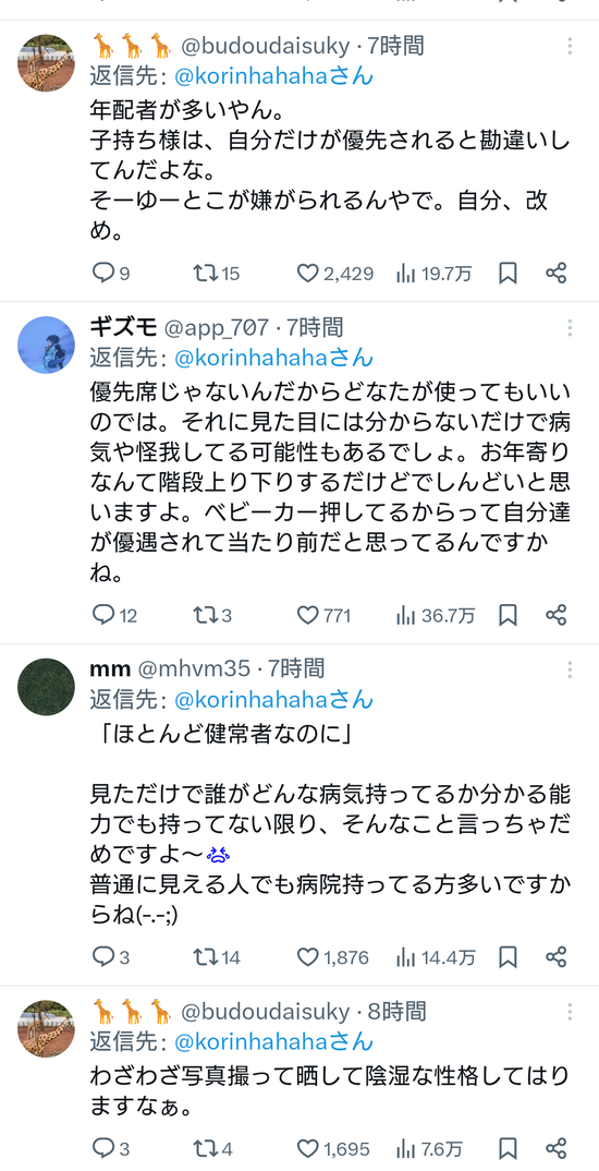 もっというわ、ベビーカーならわかるけど付き添いで乗ってる父親はなんなの?ベビーカー押してる母親だけでよくね