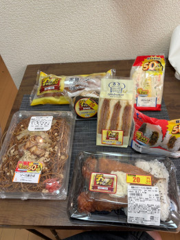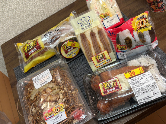 夜に大量の2倍カツカレーが半額になっててもったいないなと思ってたら、ガテン系の男が大量に来て一人3つずつ買っていった