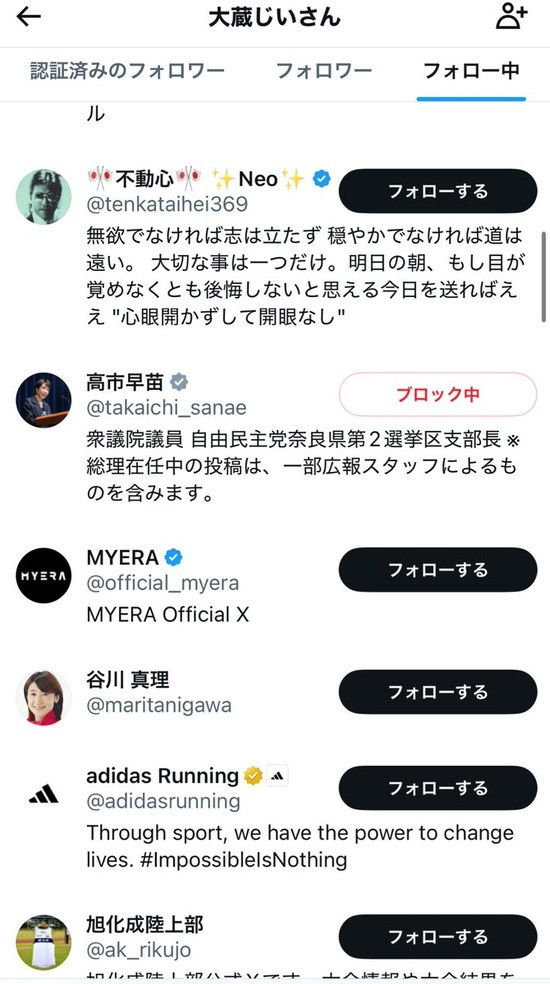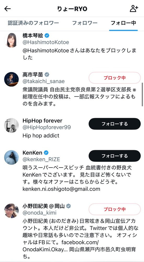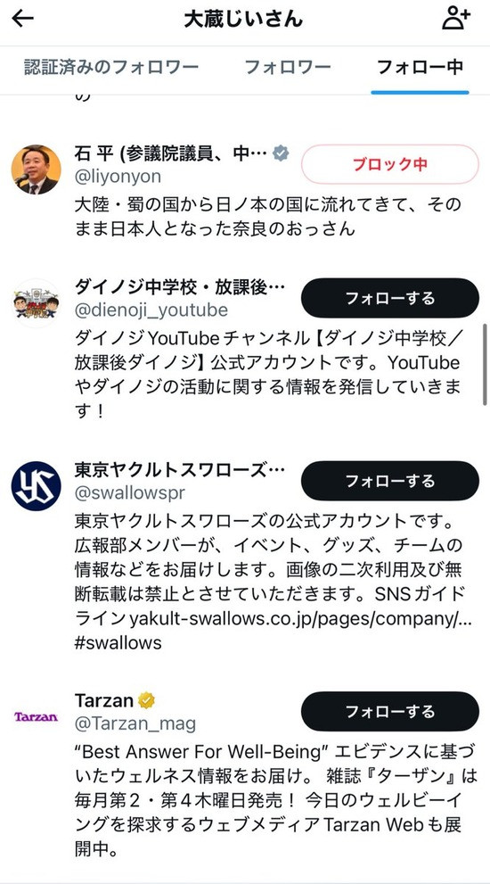 メンバーの大蔵とRyoのフォロー欄がこちら