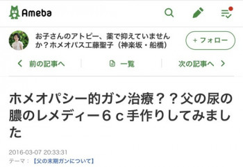ホメオパシーって一時期頭腐ったような女芸能人がちょいちょい紹介してたけどまだ生きてたんか