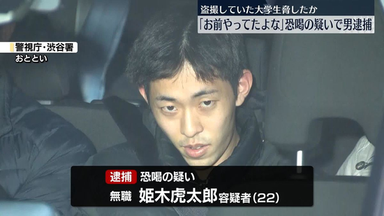 東京・渋谷署でカメラが捉えたのは、恐喝の疑いで逮捕された姫木虎太郎容疑者(22)です。
