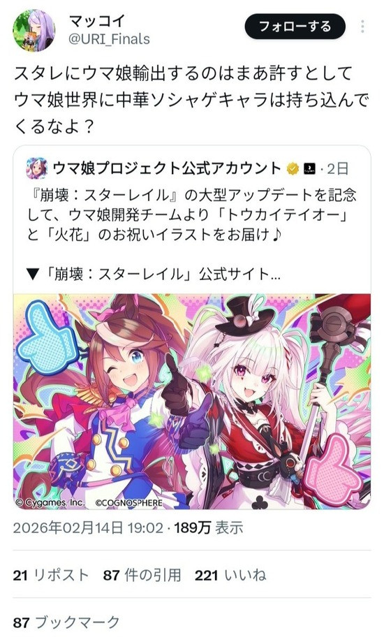 スターレイルとウマ娘って親和性高いかと思ったらそうでもないんやな