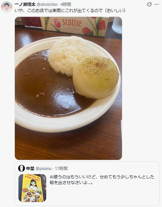 客「こんな玉ねぎ丸ごと乗っけるカレーがあるかよwww」