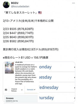 竜とそばかすの姫も北米で6億円だったらしいから日本ほどは下がってないみたいだぞ