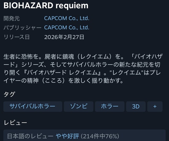 一部にしか知られてない弱小ゲームやユーザーが先鋭化してる信者ゲーで好評はよく見るけどバイオクラスのタイトルで圧倒的好評はさすがに凄いわ