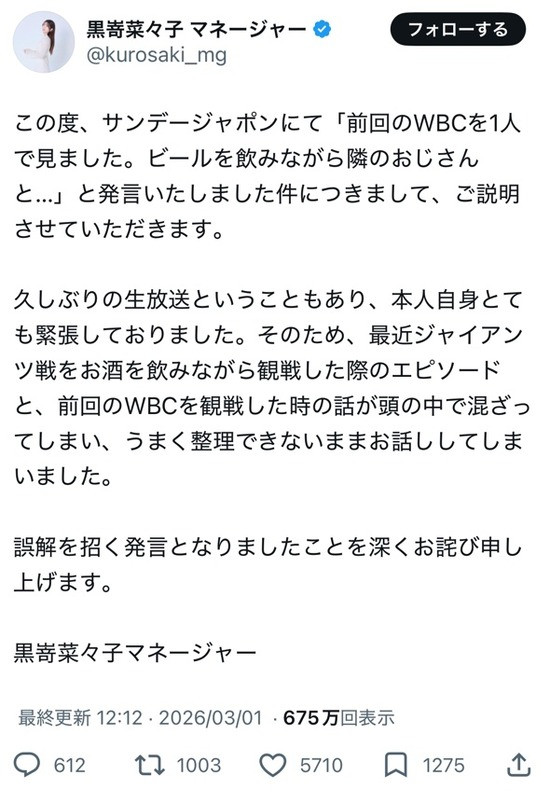 WBC観戦と巨人戦観戦を混同してたって言い訳がキツイ