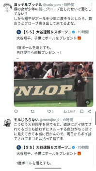 大谷は子供に渡したかったみたいだな