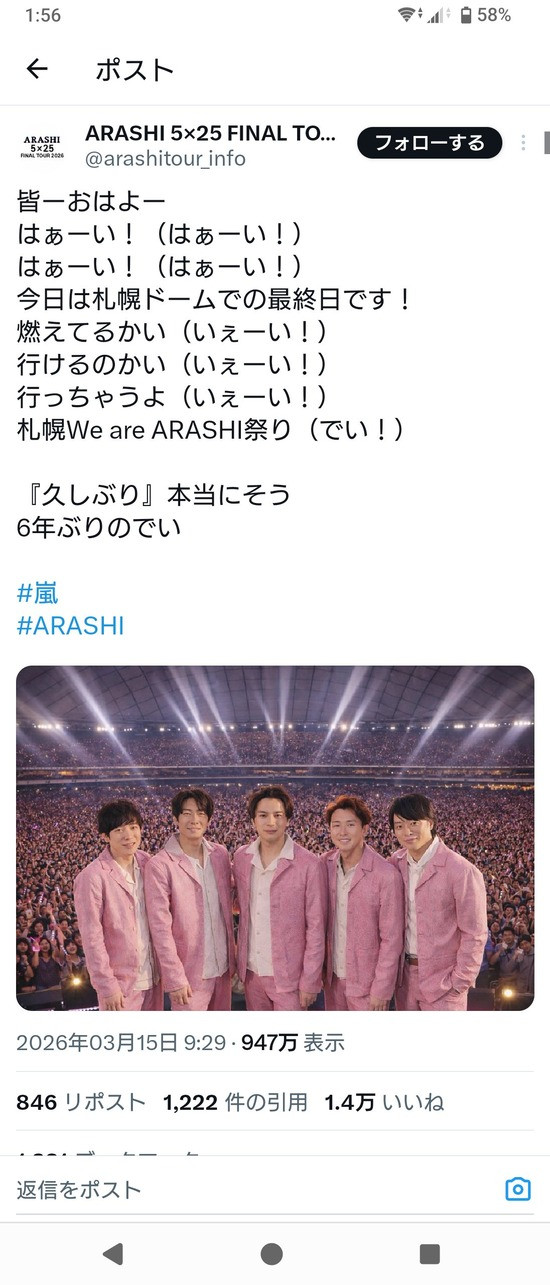 札幌ドーム満員にできるのは嵐くらい