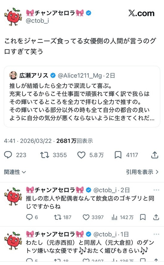 アリスってジャニーズ食ってる側なんか?