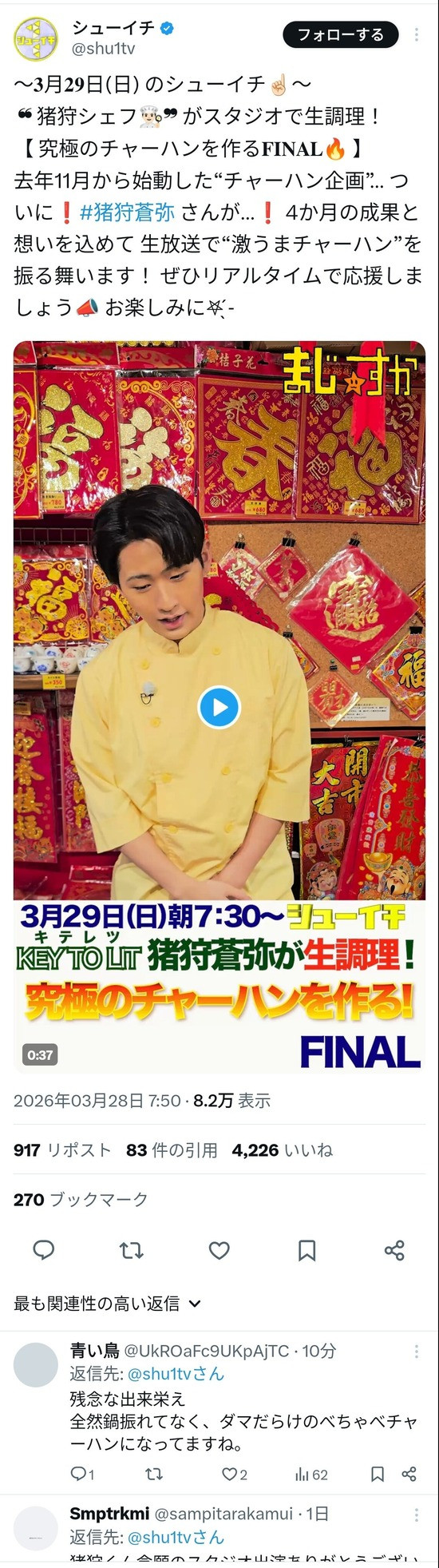これかw番組Xのコメ欄炎上してて草www