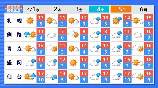 発表されるものです。それによりますと、4月5日ごろから日本全域で気温が例年と比べ著しく高くなる可能性があるということです。
