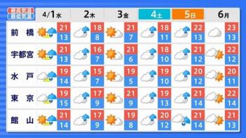 4月5日頃からすべての地域で10年に1度程度の著しい高温のおそれ 関東甲信・近畿は平年差+2.9℃の
