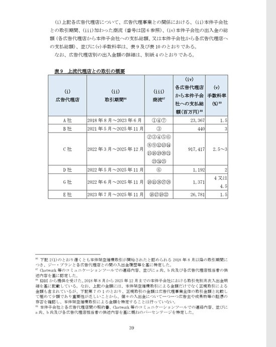 報告書によると、2社は取引先である計21社の広告代理店との間で業務を受発注したように偽装し、広告料を還流させていた。手数料の名目で329億円に上る資金が21社に流れていた。