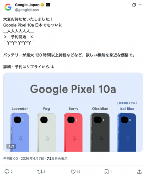 Google Pixelの誕生10周年を記念し、ヘラルボニーと共創した日本限定モデル「Isai Blue(異彩ブルー)」が展開される。自閉症啓発デーのテーマカラーであり、ヘラルボニーのブランドカラーでもあるブルーを本体色に採用した。