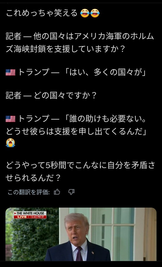 二期トランプなら自分でそう言ったのに勝手に「日本軍がイランを更地にする、費用は韓国が出す」ぐらい言うだろ